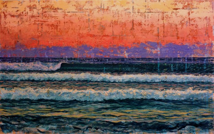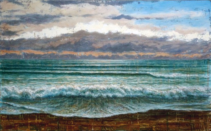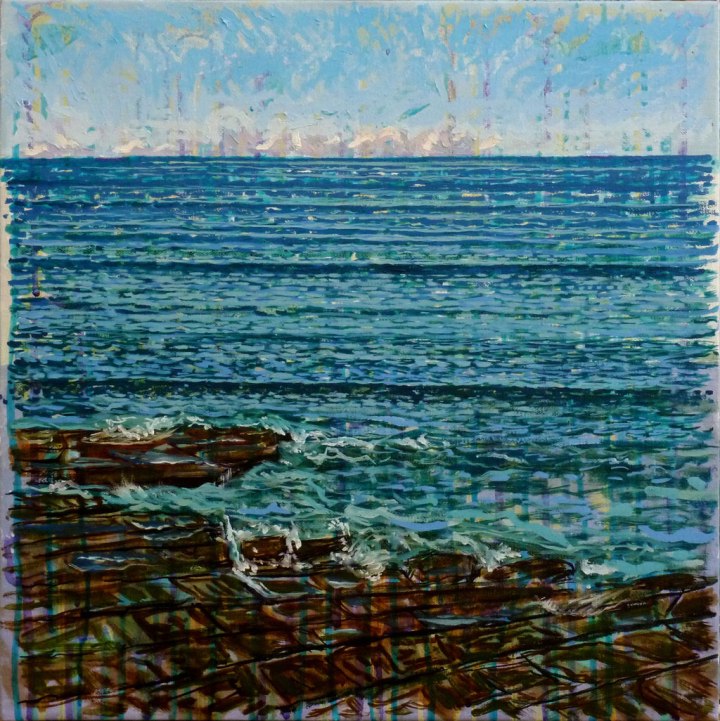 I was painting this little plein air work on a rock shelf as the light was dying behind me and I had a strong feeling that I wanted my acrylic abstract underpainting to come forward and sit on the picture plane and play a greater role in how the work was read. It didn’t really fit with the rest of my work at the time but it sat in my studio and intrigued me for around two years. Now, in the final months of 2017 its how I work.