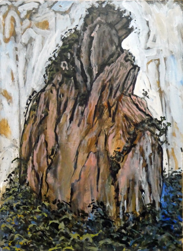 Aerial Perspective is a term known to some painters and photographers as the gradual fading and softening towards blue that we see when looking into the distant parts of a landscape- https://en.wikipedia.org/wiki/Aerial_perspective . In traditional Chinese landscapes that often use a monochrome ink they achieve this by watering down the ink and softening the tones as the eye looks into the distance. They also exaggerate the distance, not by western perspective but by working the distant hills higher and higher towards the top of the paper or silk in an exaggerated way, usually not including a horizon at all. My painting uses western perspective, aerial perspective but shows the Kanimbla hills in a way that reminded me of a Chinese landscape.
