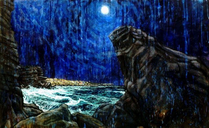Moonlight over Clovelly By rhettbrewerpainter | November 24, 2017 Moonlight over Clovelly, 153cm x 92cm, oil and acrylic on linen, 2017 A view from Coogee showing the Full Moon rising over Clovelly on a beautiful Autumn evening